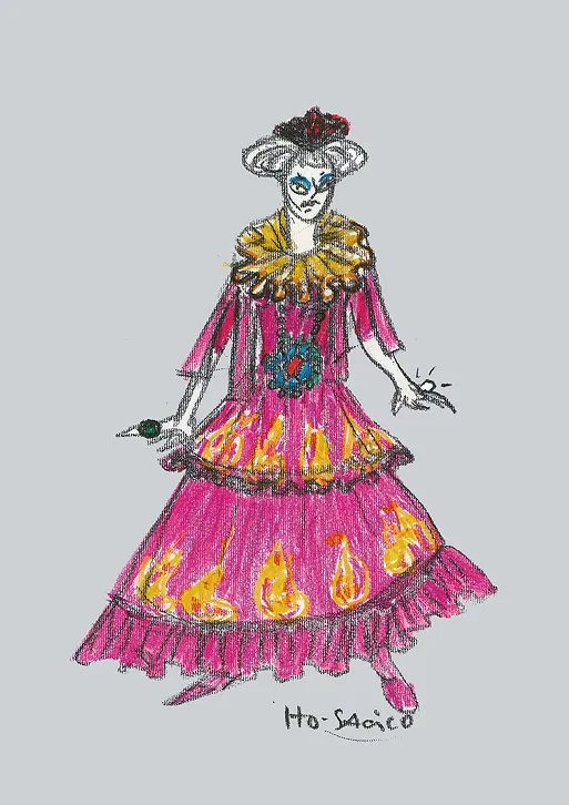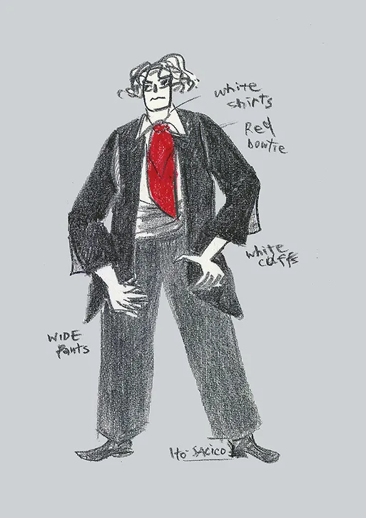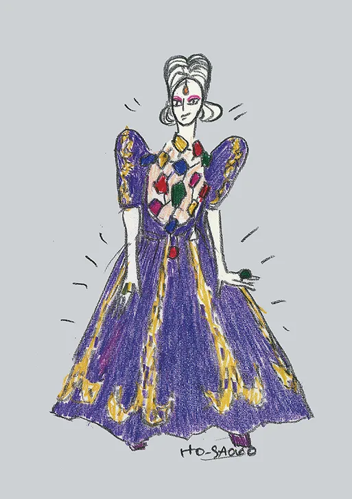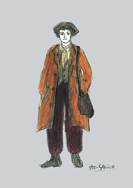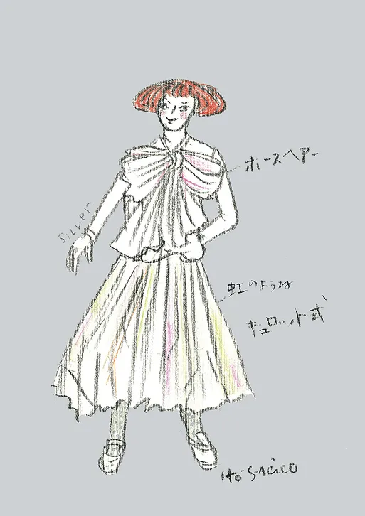 デザイン画をクリックすると登場人物についての説明と衣装に関する描写説明が見られます。
